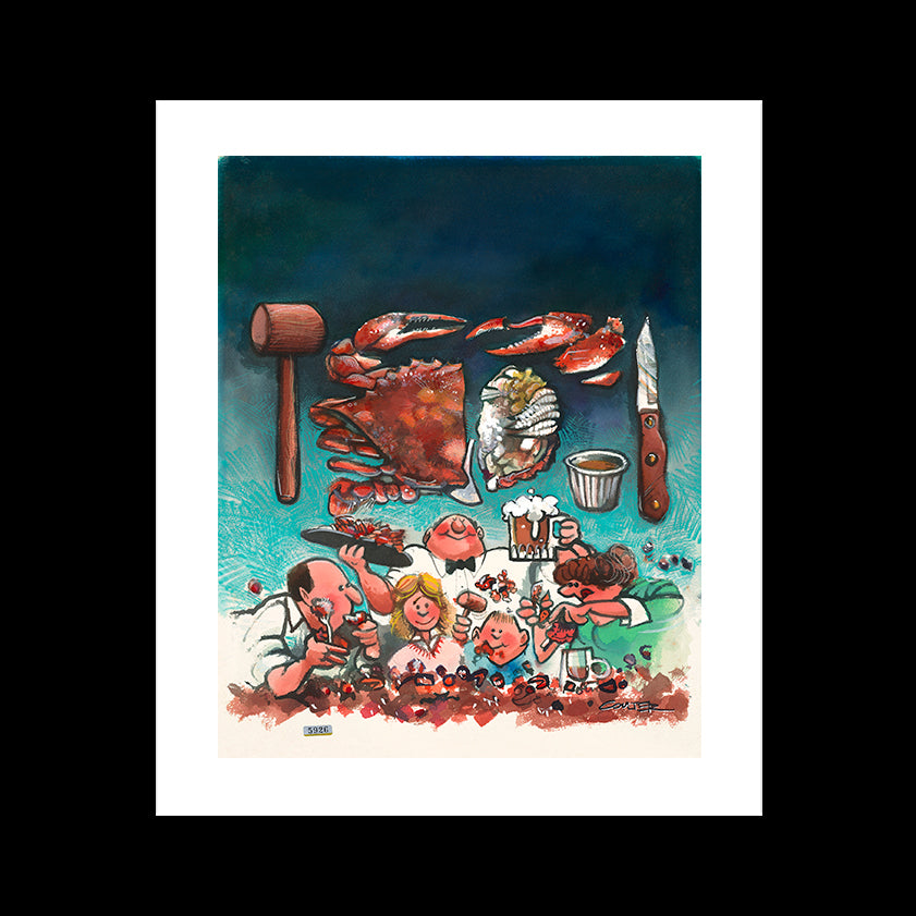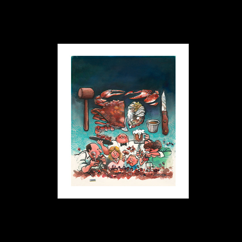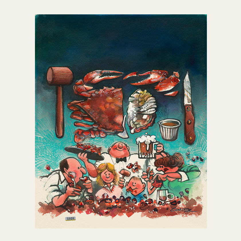 Illustration for cover story “The Best Little Crabhouses in Washington”, published in the Washington Post National Weekend Edition in July 1987. Watercolor, colored pencil, magic marker, and ink.