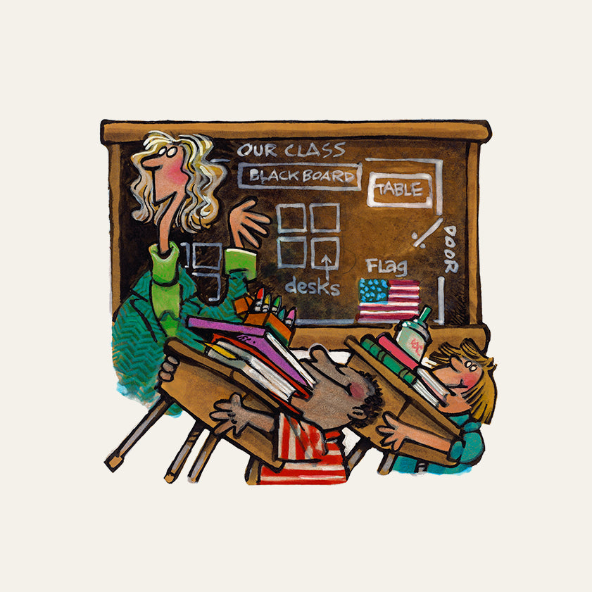 Illustration for American Federation of Teachers Magazine on gettin’ the kids in lower grades involved in rearranging the classroom.